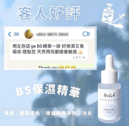 B5精華含有保濕不能缺既Vitamin B5 和 透明質酸